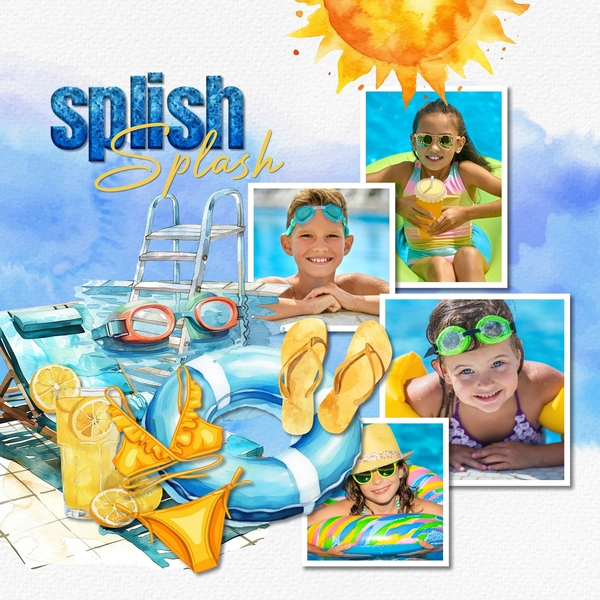Capture all your fun summertime activities and travel destinations with this beautiful watercolor embellishments collection. Embellishments include bird, hummingbird, butterfly, grill, barbeque, BBQ, beach chair, beach umbrella, Corgi, hammock, beach, book, diary, car, auto, van, sun dress, lemonade stand, lemonade, drink, smoothie, milkshake, strawberry, cocktail, beverage, fence, flower, lilac, wisteria, snapdragon, hydrangea, ice cream cone, popsicle, ice cream bar, blackberry, cherry, lemon, orange, peach, plum, watermelon, hotel pool, swimming pool, hoverboard, passport, tiki hut, palm trees, life jacket, life vest, leaves, greenery, playground, slide, inflatable, raft, innertube, roller skates, row boat, scooter, flip flops, sandals, sidewalk chalk, skateboard, golf cart, golf clubs, tennis ball, tennis racket, sun hat, sun, above ground pool, in ground pool, bathing suit, swimming suit, pool goggles, pool ladder, lounge chair, monorail, airplane, travel, tree, and water park slide. This kit is included in the Summer Watercolor Bundle. Designer: Roxanne Buchholz, Lucky Girl Creative