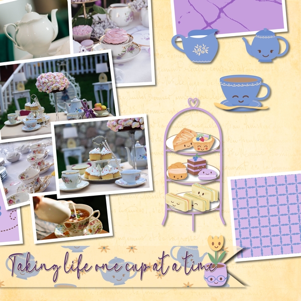 All embellishments are hand drawn by J. Ovenell Designs. No A.I. and no purchased graphics were used to create this kit.This Tea Time collection features adorable pastries, tea supplies, butterflies and more- many with cheerful character expressions. Capture your favorite afternoon tea parties or any time where tea and treats are front and center.