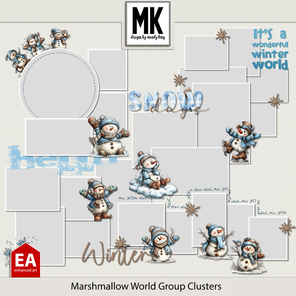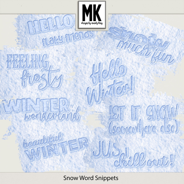 The Cozy Bundle includes Crochet Blizzard, Textile Borders, Snow Word Snippets and Marshmallow World Group Clusters
