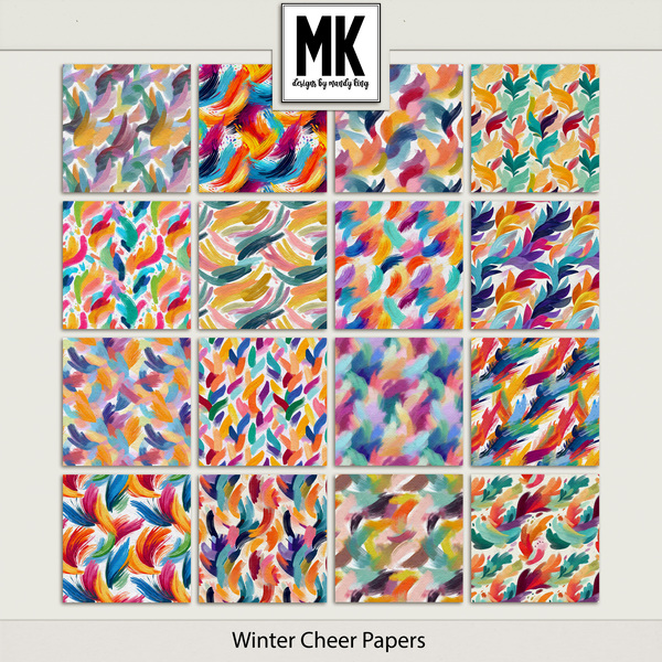 The Scrap Basket - Volume 1 includes Border Artistry 1, Clay Framation Frames & Group Clusters, Dotsy Dots Overlays & Effects, Motivational Text Paths, Once Upon A Whimsy Papers and Winter Cheer Papers.