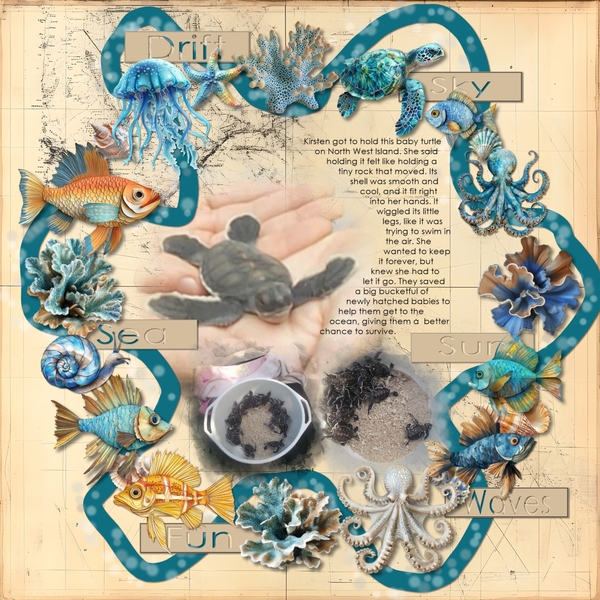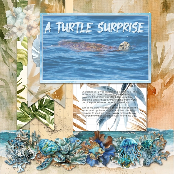 Drift into a serene escape with the Tide and Tranquility digital scrapbooking kit — a beautifully curated collection inspired by the sea's peaceful rhythm and the shoreline's gentle whispers. This kit is perfect for capturing moments of calm, coastal adventures, or reflective journaling pages. Whether scrapbooking a beach vacation, creating mindful memory pages, or simply craving a sense of calm in your digital designs, Tide and Tranquility brings the soothing spirit of the ocean to your fingertips.Keywords: Designs by Laura Burger, Laura Burger, tropical, textured papers, watercolor, Nautical Maps, tropical foliage, sea, sea coral, dolphin, ocean fish, sea turtle, waves, beach scene, start fish, snail, octopus, tropical flowers