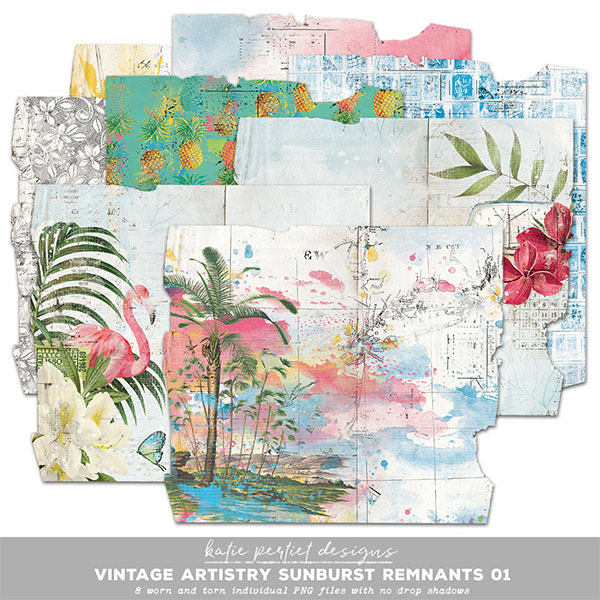 Spring Beach Themed Bundle. Includes Vintage Artistry Sunburst Remnants 1 and 2, Solid Remnants, Spiral Pages 01, Transfers 3, 4 and 5, Wishing Bubbles and Layer Works 1946. Keywords: 49M, artistry, beach, blue, branches, bright, bundle, butterfly, coats, collection, flamingos, green, happy, kit, netting, painted, palm, pineapple, pink, plumeria, seashells, sentiments, starfish, summer, travel, tropical, turtle, vacation, vintage, yellow Designer: Katie Pertiet