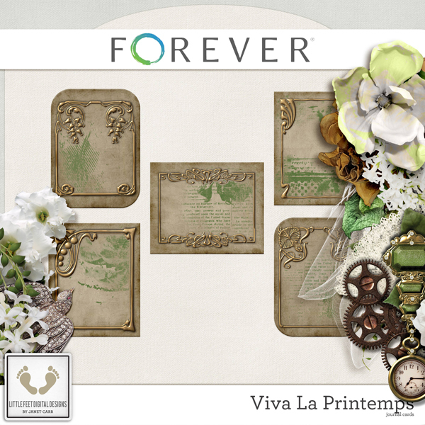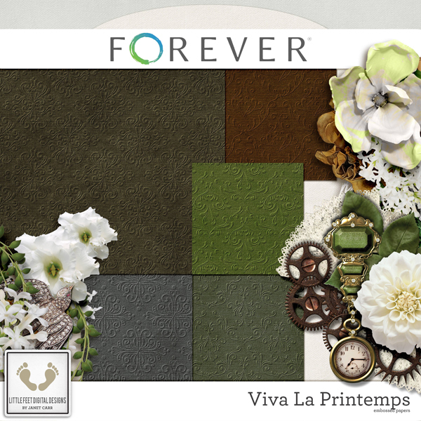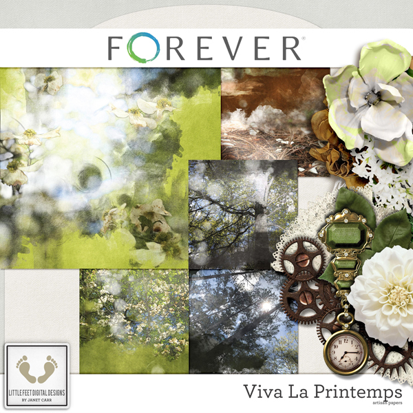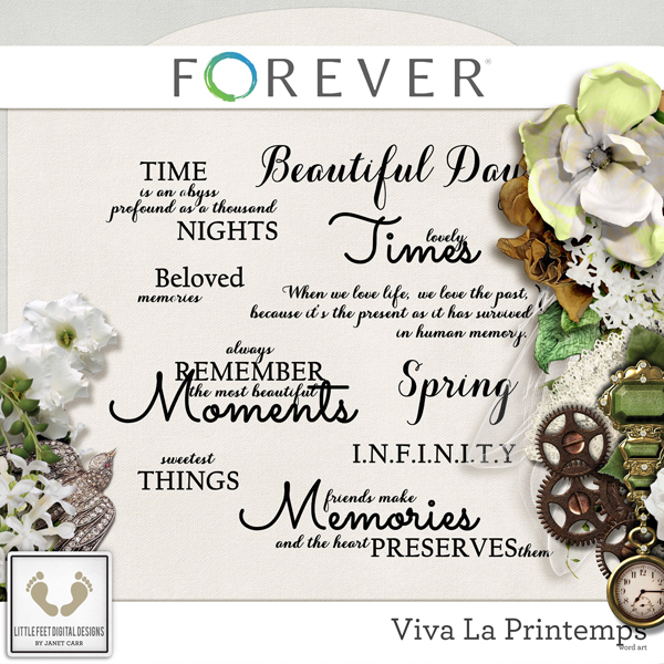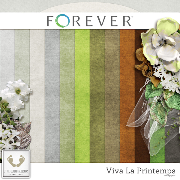 Spring is in the air! This gorgeous nature kit will have you wanting to throw open the windows and usher in Spring. Springtime is like no other time of the year. With wildflowers in bloom and love in the air, everywhere you turn you'll see natures beauty. This kit just makes you want to say 'ahhh' and is full of gorgeous flowers, metal elements and everything you need to record a spring day - with a touch of vintage. The beautiful greens and khaki colors combined with a touch of rust is just excellent to help you record your memories for this time of year when the browns of the earth turn to vibrant greens and whites. Little Feet Digital Designs is EXCLUSIVE to Forever.