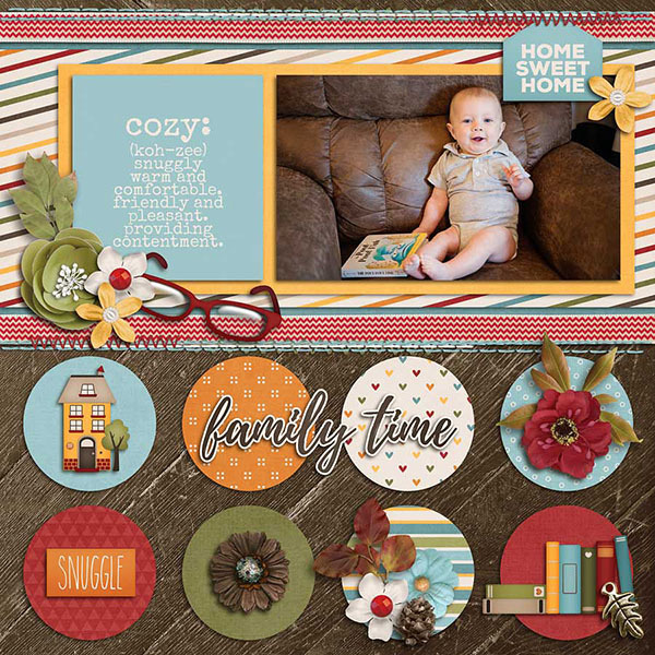 Warm And Cozy is the perfect kit to scrap all your fall indoor activities. Whatever you like to do when the weather gets crisp and you want to stay in, this kit has you covered. From reading a good book, watching a great movie, crafting or scrapping, Warm And Cozy has you covered.