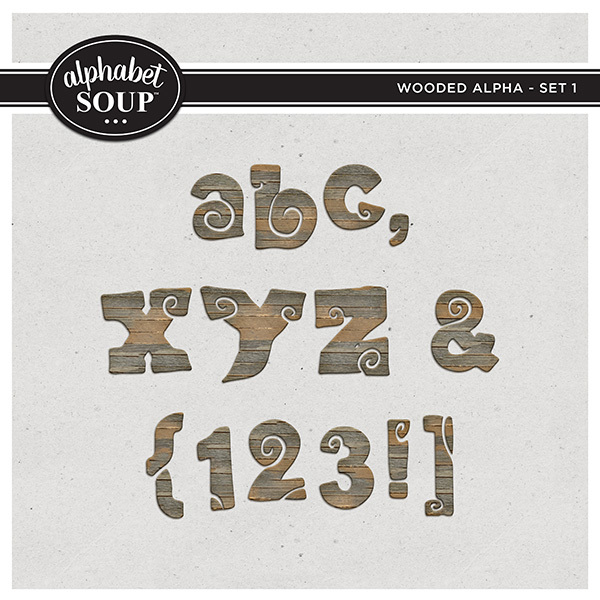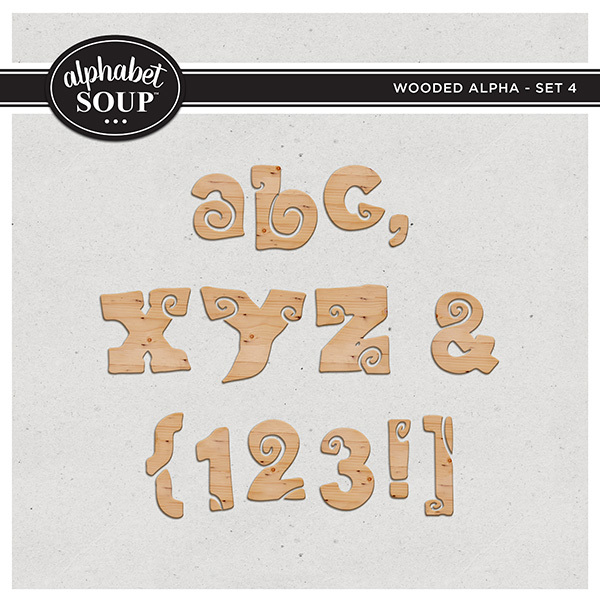 Add the perfect title or word art to your page with alphas by Alphabet Soup. This purchase is for the Wooded Alpha Sets 1-4 Bundle. It includes four unique alphas (each with a-z, A-Z, 0-9 and punctuation).