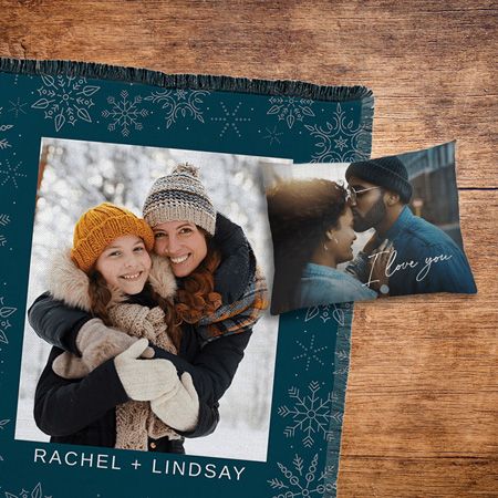 Products: Snowflakes Woven Blanket, Love Always Pillow